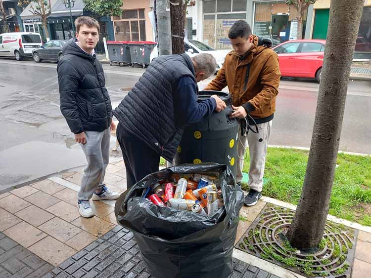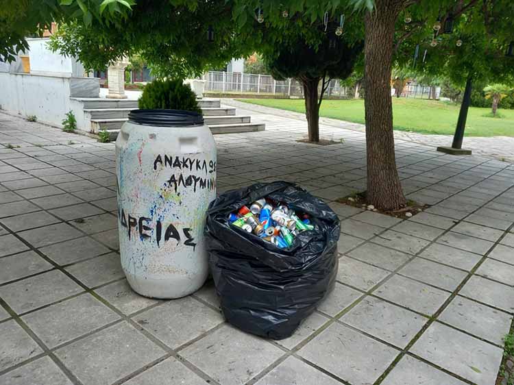 Σήμερα θα παρουσιάσουμε, μέσα από εικόνες, τη διαδικασία συλλογής και ανακύκλωσης συσκευασιών αλουμινίου (κουτάκια μπύρας και αναψυκτικών). Μια προσπάθεια που βρίσκει ανταπόκριση και πραγματοποιείται όχι μόνο στο σχολικό περιβάλλον αλλά και στον αστικό ιστό της πόλης, αφού ειδικοί κάδοι – βαρέλια έχουν τοποθετηθεί σε κεντρικά σημεία της πόλης, όπου οι συμπολίτες μας αποθέτουν σε αυτά τις συσκευασίες αλουμινίου για ανακύκλωση. Οι κάδοι είναι τοποθετημένοι σε σημεία της Βετσοπούλου, ενδεικτικά αναφέρουμε: στη γωνία με Παύλου Μελά, στην Τράπεζα Πειραιώς, πίσω από τον Σύλλογο Ποντίων, στην ALFA BANK και σε άλλα σημεία.