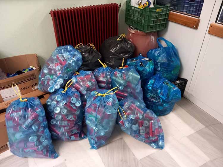 Κάδοι εναπόθεσης και ποσότητα από κουτάκια που συγκεντρώθηκε σε σημεία της Αλεξάνδρειας με τη συμμετοχή των μαθητών της Α΄ τάξης.