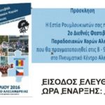 Το σωματείο Εστία Ρουμλουκιωτών διοργανώνει το 2ο Διεθνές Φεστιβάλ Παραδοσιακών Χορών στις 8-9-10 Ιουλίου 2016 στον αύλειο χώρο του Πνευματικού Κέντρου Αλεξάνδρειας