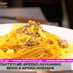 Συνταγή: Σπαγγέτι με φρέσκο λουκάνικο, μήλο και κρόκο Κοζάνης – Ο Έμβολος χορηγός