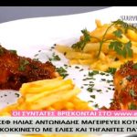 Στα πλαίσια της εκπομπής 2στις ΔΥΟ της τηλεόρασης «Ε» με την Φωτεινή Γεωργαντά περίφημος σεφ Ηλίας Αντωνιάδης μας φτιάχνει σήμερα Κοτόπουλο κοκκινιστό με ελιές...