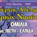 Αγαθοεργός Αδελφότητα Κυριών Ναούσης : Διοργάνωση ομιλίας με θέμα: «ΠΙΣΤΗ –...