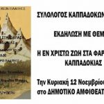 Ο Σύλλογος Καππαδοκών Πλατέος διοργανώνει εκδήλωση την Κυριακή 12 Νοεμβρίου και ώρα 18:00 με θέμα : «Η εν Χριστώ ζωή στα Φάρασα της Καππαδοκίας»