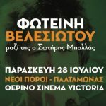 Η Φωτεινή Βελεσιώτου live την Παρασκευή 28 Ιουλίου στο Victoria Cinema - Νέοι Πόροι (Πλαταμώνας). Μαζί της ο Σωτήρης Μπαλλάς