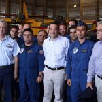 Ολοκληρώνοντας την επίσκεψη του στην αεροπορική βάση πυρόσβεσης στην Ελευσίνα, ο Αλέξης Τσίπρας επισκέφθηκε υπόστεγο όπου εργάζονται οι τεχνικοί των Canadair, συνομίλησε μαζί τους σε φιλικό κλίμα για τις...