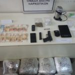 Επίσης κατασχέθηκαν ένα πιστόλι με φυσίγγια, χρηματικά ποσά και ζυγαριές ακριβείας