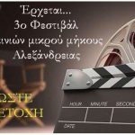 Η Ομάδα Δράσης και Αλληλεγγύης Αλεξάνδρειας ανακοινώνει την διοργάνωση του Φεστιβάλ Ταινιών Μικρού Μήκους Αλεξάνδρειας για τρίτη συνεχή χρονιά και απευθύνει κάλεσμα για συμμετοχή...
