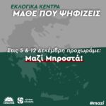 Στις 5 & 12 Δεκέμβρη, όλοι #mazi να γίνουμε πρωταγωνιστές στη νέα εποχή της παράταξης μας! Δείτε τα εκλογικά κέντρα :