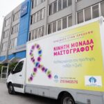 Η κινητή μονάδα μαστογραφίας της Ελληνικής Αντικαρκινικής Εταιρείας στα κεντρικά γραφεία της Νέας Δημοκρατίας