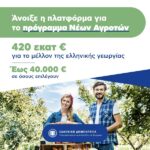 Άνοιξε, σήμερα 12 Νοεμβρίου, η πλατφόρμα για το πρόγραμμα για το πρόγραμμα Νέων Αγροτών