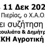 Την Κυριακή, 11 Δεκ 2022, στις 11.00 στην Ρητίνη Πιερίας οργανώνεται συζήτηση για την «ΤΟΠΙΚΗ Αγροτική Ανάπτυξη» με τους κκ Γεώργιο Κουκουλιάτα και Δημήτριο...