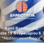 Το Σάββατο, 19 Φεβρουαρίου 2022, ώρα 7 μ.μ., στο ξενοδοχείο MEDITERRANEAN PALACE HOTEL της Θεσσαλονίκης, θα πραγματοποιηθεί η κοπή βασιλόπιτας του κομματικού συνασπισμού «ΔΗΜΙΟΥΡΓΙΑ»,...