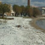 Στη θάλασσα έφτασε το χιόνι στο Αλιβέρι, σκεπάζοντας την άμμο, μετά την...
