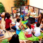 Μία βιβλιοθήκη που μετακινείται, που αντί για ράφια έχει σχοινιά με απλωμένα βιβλία, που αντί για καρέκλες και γραφεία έχει μαξιλάρια και μία σκηνή....