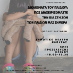 Εκδήλωση του Δήμου Νάουσας και της Π.Ε. Ημαθίας στο πλαίσιο της Παγκόσμιας Ημέρας κατά της Κακοποίησης των Παιδιών & των Δικαιωμάτων του Παιδιού