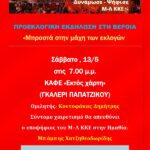 Το Μ-Λ ΚΚΕ (Κ.Ο. Ημαθίας) διοργανώνει την Κεντρική Προεκλογική του εκδήλωση στη Βέροια το Σάββατο 13 Μάη στις 7.00 μ.μ. στο ΚΑΦΕ «Εκτός χάρτη»...