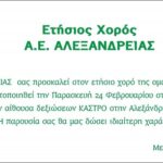 Την Παρασκευή 24 Φεβρουαρίου ο ετήσιος χορός της ποδοσφαιρικής ομάδας της Α.Ε. Αλεξάνδρειας