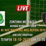 Ζωντανή μετάδοση αγώνα κυπέλλου ΕΠΣΗ: ΑΕ Αλεξάνδρειας – ΝΠΣ Βέροια 2019
