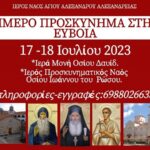 Ο Ιερός μας Ναός, διοργανώνει 2ημερη προσκυνηματική εκδρομή στην Ευβοια, από τις 17-18 Ιουλίου.