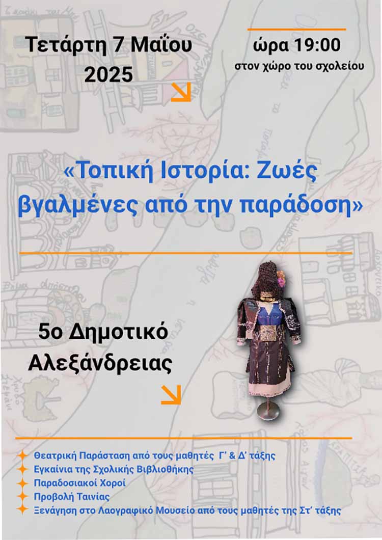 Αλεξάνδρεια 5ο Δημοτικό Σχολείο Αλεξάνδρειας: Εκδήλωση τοπικής ιστορίας Από Έμβολος - 07/05/2025 Εκδήλωση τοπικής ιστορίας