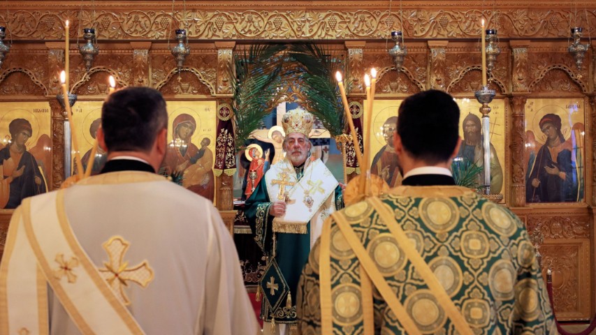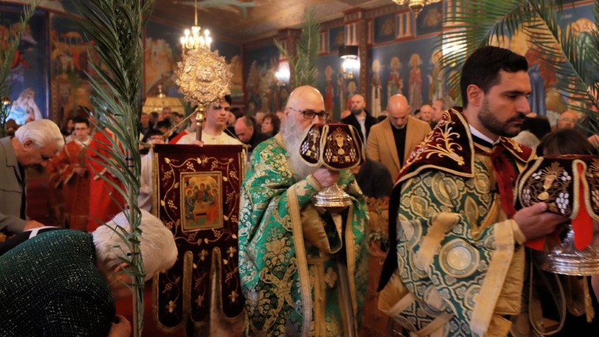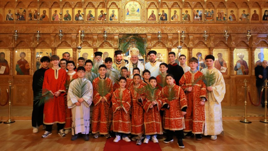 Του Όρθρου εχοροστάτησε και της πανηγυρικής Θείας Λειτουργίας προεξήρχε, την Κυριακή των Βαΐων, 5 Απριλίου 2026, ο Σεβασμιώτατος Αρχιεπίσκοπος Θυατείρων και Μεγάλης Βρεταννίας κ. Νικήτας. Εν συνεχεία, τον Σεβασμιώτατο πλαισίωσαν ιεροπρεπώς, κατά την τέλεση της Θείας Μυσταγωγίας, ο Αιδεσιμ. Πρωτοπρεσβύτερος κ. Χρήστος Στεφάνου, ο Ιερολογ. Αρχιδιάκονος κ. Γεώργιος Τσουρούς και ο Ευλαβέστατος Διάκονος κ. Καταλίν Κωνσταντής.