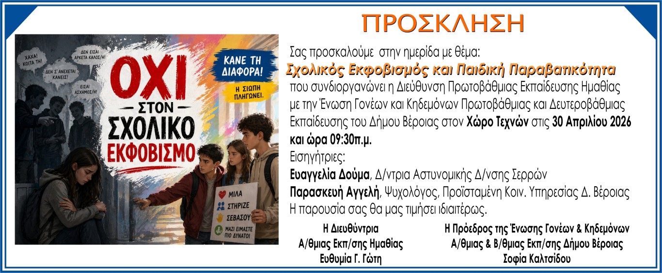 Η Εκτελεστική Γραμματεία του Νομαρχιακού Τμήματος Α.Δ.Ε.Δ.Υ. Ημαθίας καλεί τους εργαζόμενους στο Δημόσιο να δώσουν δυναμικά το παρόν στην Πρωτομαγιάτικη απεργιακή συγκέντρωση που θα πραγματοποιηθεί την Παρασκευή 1η του Μάη 2026 στις 11:00 π.μ. στην Πλατεία Δημαρχείου Βέροιας. Τιμάμε τους αγώνες των εργατών. Χτίζουμε το αύριο με δικαιώματα, αξιοπρέπεια και αλληλεγγύη.