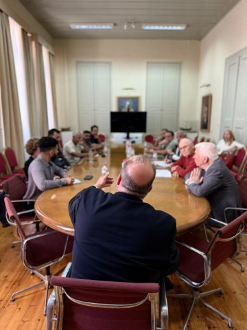 Ευρεία σύσκεψη πραγματοποιήθηκε σήμερα στη Γενική Γραμματεία Αιγαίου και Νησιωτικής Πολιτικής υπό τον Γενικό Γραμματέα του Υπουργείου Αγροτικής Ανάπτυξης και Τροφίμων, Σπύρο Πρωτοψάλτη, στο πλαίσιο της ομάδας διαχείρισης κρίσης για την αντιμετώπιση του αφθώδη πυρετού στη Λέσβο, στην οποία συμμετείχαν ο Περιφερειάρχης Βορείου Αιγαίου, Κωνσταντίνος Μουτζούρης, ο Δήμαρχος Μυτιλήνης, Παναγιώτης Χριστόφας, η αρμόδια Αντιπεριφερειάρχης Αγροτικής Οικονομίας, εκπρόσωποι των κτηνοτρόφων, καθώς και στελέχη της Περιφέρειας Βορείου Αιγαίου και της τοπικής κτηνιατρικής υπηρεσίας / Διεύθυνσης Αγροτικής Οικονομίας και Κτηνιατρικής — ΔΑΟΚ.