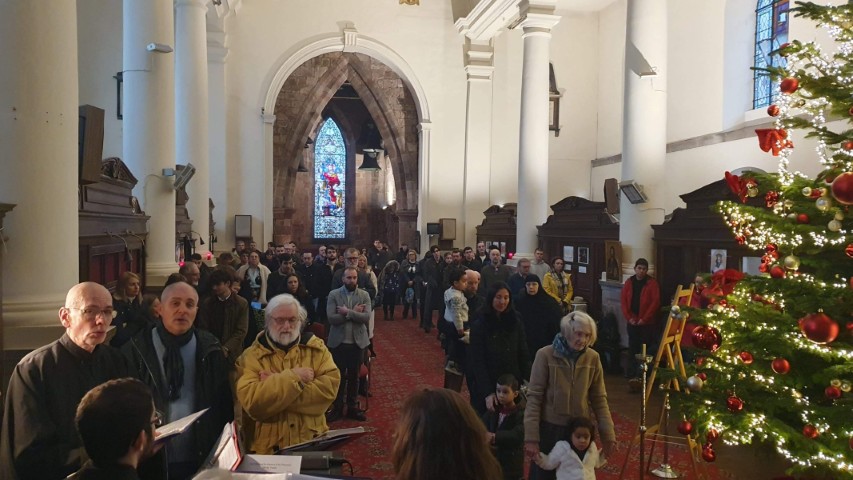 Η θεία Μυσταγωγία ετελέσθη στον ανακαινισμένο Ιερό Ναό, ο οποίος περιήλθε περίπου προ έξι μηνών στην δικαιοδοσία της Ιεράς Αρχιεπισκοπής Θυατείρων και Μεγάλης Βρεταννίας και συνιστά ήδη τον μόνιμο οίκο προσευχής της τοπικής Ορθοδόξου παροικίας. Το οικοδόμημα διασώζει μακραίωνη μνήμη, καθώς η παρουσία ναού στο σημείο μαρτυρείται ήδη από τον 10ο αιώνα, ενώ αναφορές σε αυτόν ανιχνεύονται στο Domesday Book. Η σύγχρονη αρχιτεκτονική του όψη, σε ρυθμό κλασικιστικό, ανάγεται στην εκ βάθρων ανακαίνιση που επιτέλεσε ο αρχιτέκτονας Thomas Farnolls Pritchard το 1750.