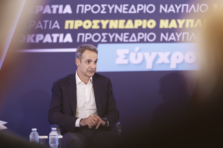 Ο Πρωθυπουργός και Πρόεδρος της Νέας Δημοκρατίας Κυριάκος Μητσοτάκης συμμετείχε σε συζήτηση με τον Δήμαρχο Θέρμου Αιτωλοακαρνανίας Σπύρο Κωνσταντάρα, τον Προϊστάμενο της Γενικής Διεύθυνσης Πληροφορικής Υποδομών και Επικοινωνιών στη Γενική Γραμματεία Πληροφοριακών Συστημάτων και Ψηφιακής Διακυβέρνησης Άρη Μελετίου και τον επιχειρηματία Σταύρο Στούπα, στο πλαίσιο του προσυνεδρίου της Νέας Δημοκρατίας στο Ναύπλιο, με θέμα «Σύγχρονο κράτος για όλους».
