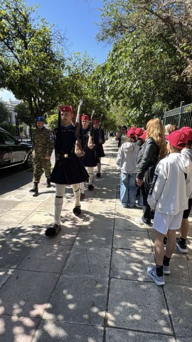 Στη συνέχεια περιηγήθηκαν στην πλατεία Συντάγματος και παρακολούθησαν την αλλαγή φρουράς των Ευζώνων. Η διαδρομή συνεχίστηκε με περίπατο στην οδό Ηρώδου Αττικού, τον Εθνικό Κήπο και το Ζάππειο Μέγαρο, όπου οι μαθητές γνώρισαν σημαντικά σημεία της νεότερης ιστορίας της πόλης.