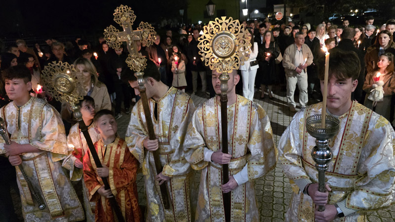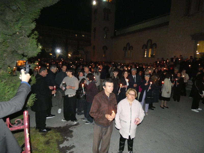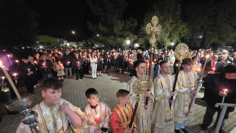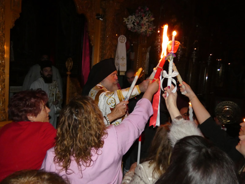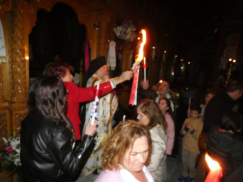 Πλήθος πιστών προσήλθαν και φέτος για να παρακολουθήσουν την Ακολουθία της Αναστάσεως, να λάβουν το Άγιο φως και να ακούσουν το χαρμόσυνο μήνυμα πως ο θάνατος νικήθηκε από την ζωή, το «Χριστός Ανέστη».