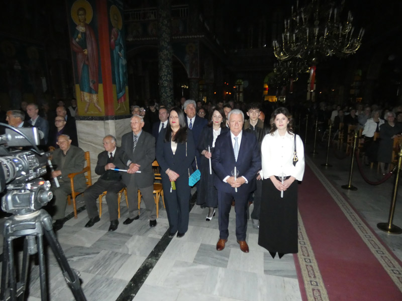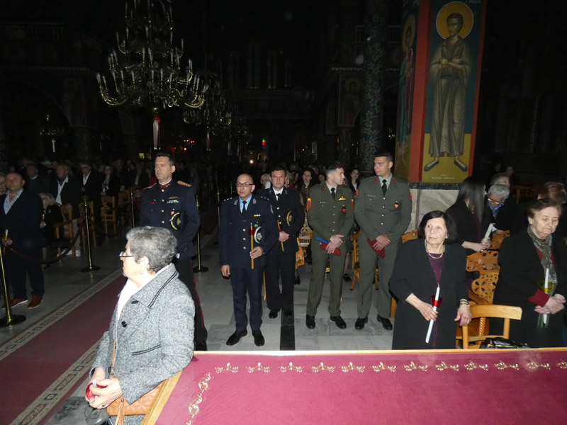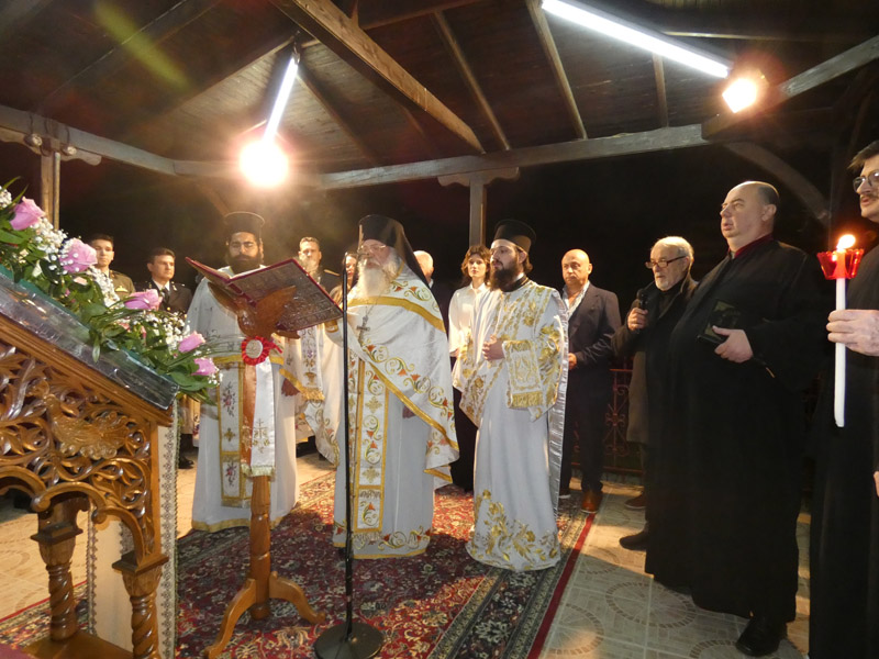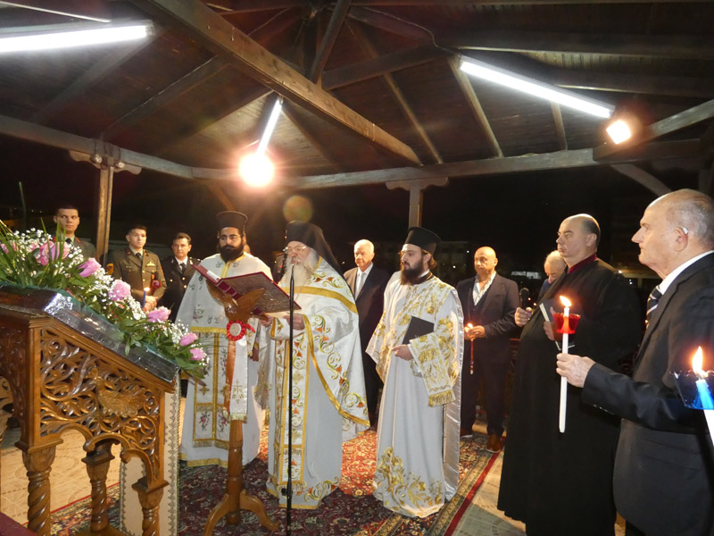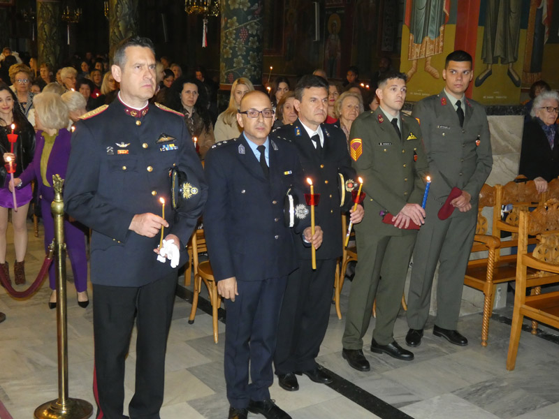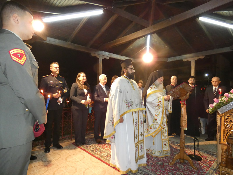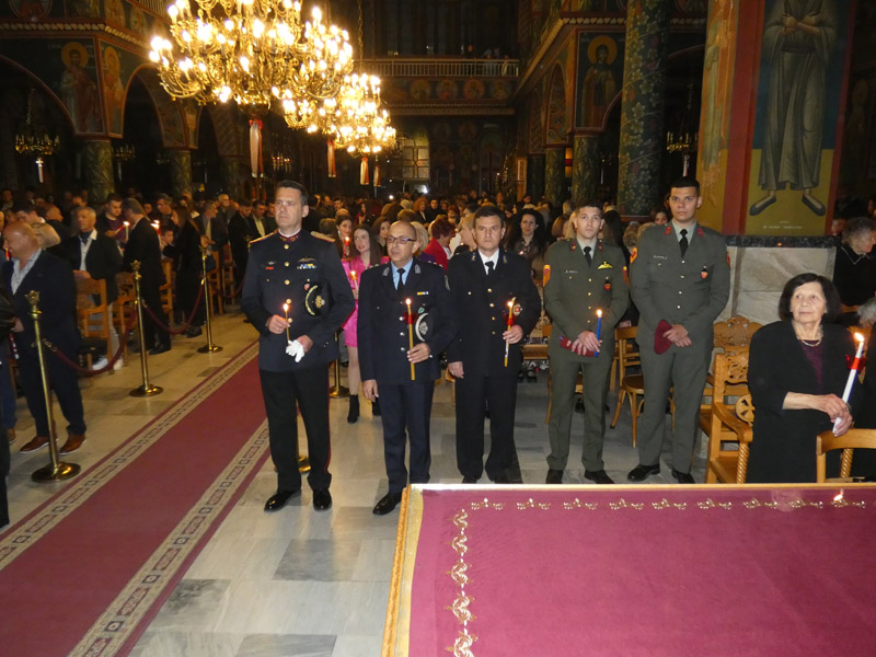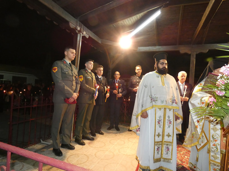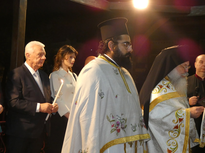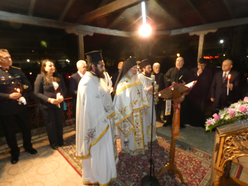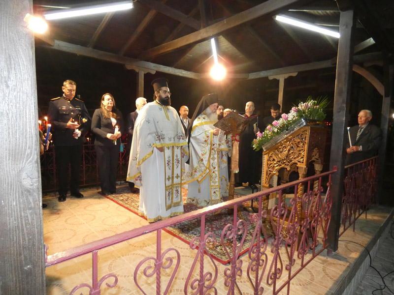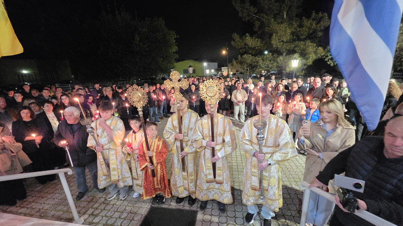 Ακολούθησε η έξοδος στο προαύλιο του ναού, όπου παρουσία ιερέων, αρχόντων της τοπικής πολιτικής αρχής, διοικητών και αντιπροσωπειών του Στρατού, των Σωμάτων Ασφαλείας και πολυάριθμου πλήθους πιστών, ακούστηκε το θεάρεστο: “Χριστός Ανέστη”!