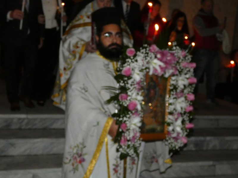 Με την πρέπουσα εκκλησιαστική λαμπρότητα και μεγαλοπρέπεια, εορτάσθηκε το βράδυ του Μ. Σαββάτου η Ανάσταση του Κυρίου ημών Ιησού Χριστού στον Ιερό Ναό Γεννήσεως Θεοτόκου Πλατέος όπου χοροστάτησε ο πατέρας Χρήστος Μιχαηλίδης