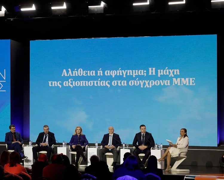 Ο Γενικός Γραμματέας Επικοινωνίας και Ενημέρωσης αναφέρθηκε μεταξύ άλλων στα ευρήματα της έρευνας Marc «Αναζητώντας την αλήθεια» (Alitheia Forum, Μάρτιος 2026): Τα μέσα κοινωνικής δικτύωσης ξεπέρασαν για πρώτη φορά την τηλεόραση ως κύρια πηγή ενημέρωσης (37% τα social media έναντι 36% της τηλεόρασης), ενώ εννιά στους δέκα πολίτες θεωρούν τα fake news απειλή για τη Δημοκρατία. Σε αυτό το «περιβάλλον ευαλωτότητας της αξιοπιστίας», τόνισε, «η κυβέρνηση Κυριάκου Μητσοτάκη έχει λάβει σαφή θέση: στηρίζουμε το οικοσύστημα των μέσων ενημέρωσης ως τη βασική πυξίδα αξιοπιστίας και ενημέρωσης των πολιτών».