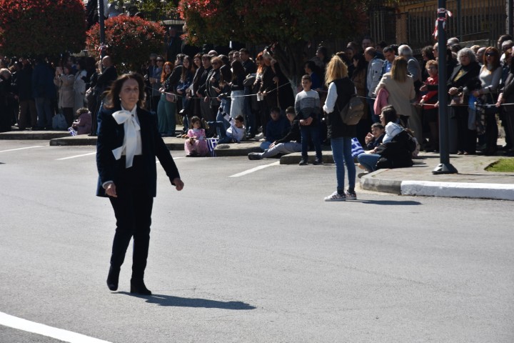 Της παρέλασης ηγήθηκε η Καθηγήτρια Φυσικής Αγωγής του 3ου Γυμνασίου Νάουσας κα Θωμαΐς Σαμαρά.