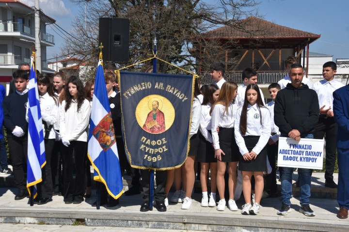 Οι εκδηλώσεις κορυφώθηκαν με τη μαθητική και πολιτιστική παρέλαση που διεξήχθη στον χώρο μπροστά από το Ηρώο της πόλης. Ξεχωριστή στιγμή αποτέλεσε η συμμετοχή των μαθητών του Γυμνασίου Αποστόλου Παύλου της Πάφου από την Κύπρο, οι οποίοι τίμησαν με την παρουσία τους την Ηρωική Πόλη της Νάουσας και τον διαχρονικό αγώνα για την ελευθερία.