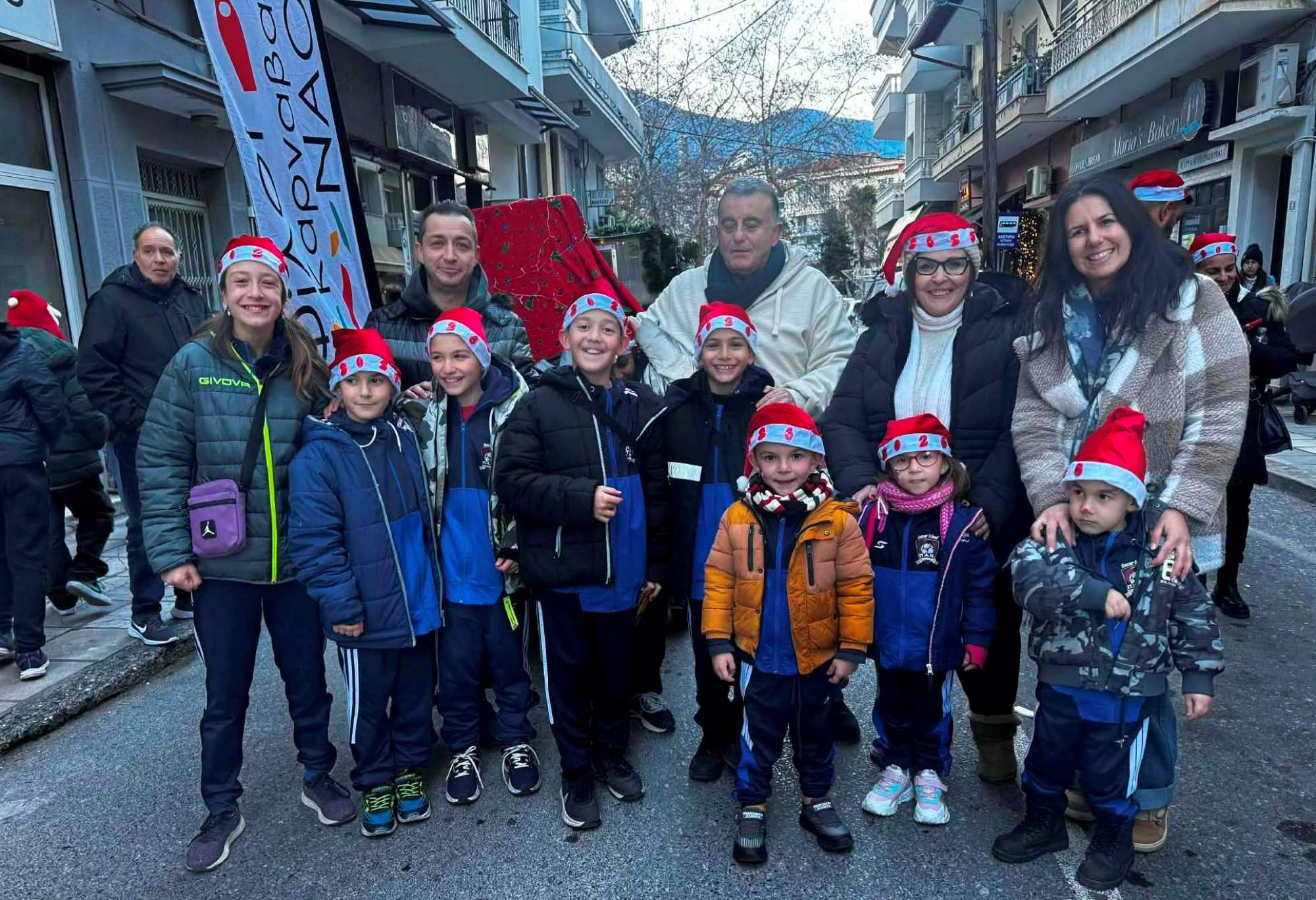 Ο Δήμος Νάουσας και η Αντιδημαρχία Παιδείας, Νεολαίας και Αθλητισμού ευχαριστούν θερμά τους χορηγούς της εκδήλωσης: Agora Stefanidou, Coffee Box, Τζέπος – Daily Bakery, Tuo Caffe Naoussa, IL GUSTO, καθώς και τους Φίλους του Καρναβαλιού Νάουσας για τη σημαντική συμβολή τους στην επιτυχημένη υλοποίηση του 1st Naoussa Santa Parade.