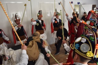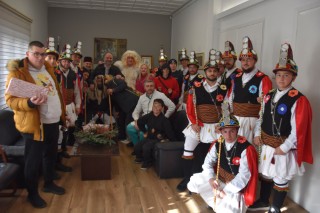 Τα μέλη της Λέσχης, φορώντας τις χαρακτηριστικές στολές και ακολουθώντας τα παραδοσιακά δρώμενα, μετέφεραν στο Δημαρχείο το εορταστικό πνεύμα των ημερών, αναδεικνύοντας τη διαχρονική αξία των λαϊκών εθίμων και της άυλης πολιτιστικής κληρονομιάς της περιοχής.