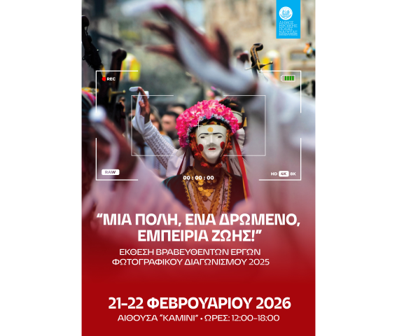 Ο Δήμος Ηρωικής Πόλεως Νάουσας ενημερώνει το κοινό ότι από το Σάββατο 21 Φεβρουαρίου έως και τη Δευτέρα 23 Φεβρουαρίου 2026 θα πραγματοποιηθεί η Έκθεση των βραβευθέντων έργων του 2ου Διαγωνισμού Φωτογραφίας με τίτλο «Γενίτσαροι και Μπούλες: Μια πόλη, ένα δρώμενο, Εμπειρία ζωής».