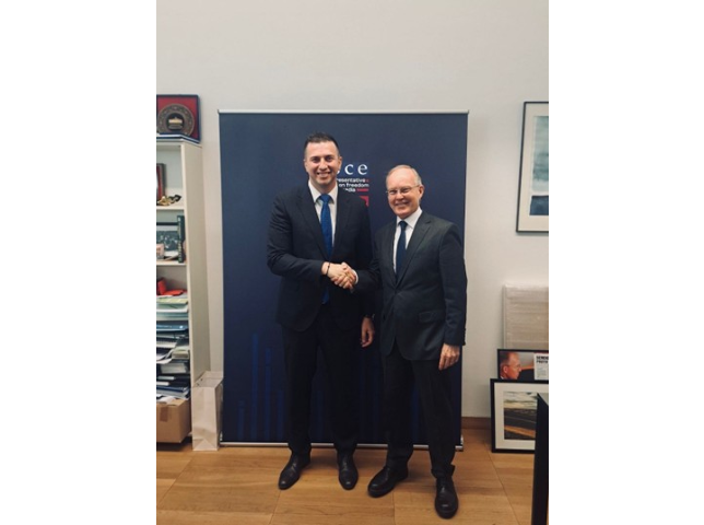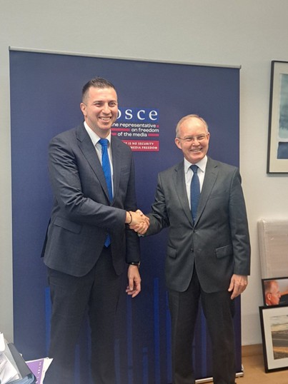 Με τον Εκπρόσωπο του Οργανισμού για την Ασφάλεια και τη Συνεργασία στην Ευρώπη αρμόδιου για την Ελευθερία των Μέσων Ενημέρωσης Jan Braathu, συναντήθηκε ο Γενικός Γραμματέας Επικοινωνίας και Ενημέρωσης Δημήτρης Κιρμικίρογλου, που επισκέφθηκε τον ΟΑΣΕ. Ο Γενικός Γραμματέας παρουσίασε τις μεταρρυθμίσεις που υλοποιεί η χώρα στο πλαίσιο της ολοκληρωμένης στρατηγικής για την ελευθερία των Μέσων Ενημέρωσης και τη δημοκρατική ανθεκτικότητα.