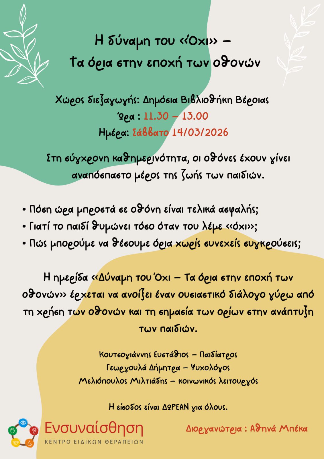 Διοργάνωση : Κέντρο Ειδικών Θεραπειών ΕΝΣΥΝΑΙΣΘΗΣΗ