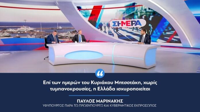 Συνέντευξη του Υφυπουργού παρά τω Πρωθυπουργώ και Κυβερνητικού Εκπροσώπου Παύλου Μαρινάκη στην εκπομπή του ΣΚΑΪ «ΣΗΜΕΡΑ» και τους δημοσιογράφους Δημήτρη Οικονόμου και Άκη Παυλόπουλο