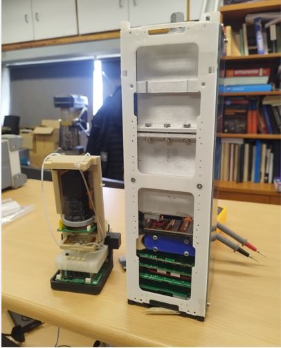 «Στις δύο διαστάσεις είμαστε αυστηρά στα 10×10 εκατοστά. Στο ύψος έχουμε λίγα εκατοστά περιθώριο», εξηγεί ο κ. Χατζόπουλος. Μέσα σε αυτόν τον περιορισμένο όγκο, η ομάδα κατάφερε να ενσωματώσει ένα πλήρες σύστημα: υπολογιστή, πλακέτα τηλεπικοινωνιών, συστήματα ελέγχου και το καινοτόμο σύστημα λέιζερ για επικοινωνία με σταθμούς βάσης, όπως αυτός στον Χολομώντα. «Το εντυπωσιακό είναι ότι όλα αυτά σχεδιάστηκαν και κατασκευάστηκαν από τα ίδια τα παιδιά. Δεν είναι απλώς θεωρία. Είναι hardware που πετάει στο διάστημα», τονίζει ο κ. Χατζόπουλος. Η επιτυχία του PeakSat βασίστηκε σε μια ευρεία συνεργασία μεταξύ διαφορετικών ακαδημαϊκών τμημάτων του ΑΠΘ. Στην ομάδα συμμετέχουν φοιτητές από το Τμήμα Ηλεκτρολόγων Μηχανικών και Μηχανικών Υπολογιστών, το Τμήμα Φυσικής, το Τμήμα Πληροφορικής, αλλά και επιστήμονες από πεδία, όπως η βιολογία και η μηχανολογία. Παράλληλα, σημαντικό ρόλο έπαιξαν τα εργαστήρια του ΑΠΘ, όπου πραγματοποιήθηκε η σχεδίαση, η κατασκευή και οι δοκιμές των υποσυστημάτων. Το Αστεροσκοπείο του Αριστοτελείου αποτέλεσε τον βασικό κόμβο επιχειρήσεων (operations), από όπου γίνεται η επικοινωνία με τον δορυφόρο.