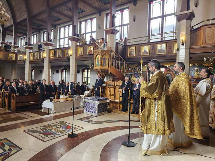 Απευθύνοντας πνευματικό λόγο προς το πολυπληθές εκκλησίασμα, ο Θεοφιλέστατος Επίσκοπος ομίλησε αρχικώς στην ελληνική γλώσσα, αναφερόμενος ιδιαιτέρως στην αξία του Ελληνισμού και στο πνεύμα των Ελλήνων από την αρχαιότητα μέχρι σήμερα. Ευχήθηκε να μην υπάρξουν ποτέ ξανά καταστροφές στο έθνος μας, παρακαλώντας τον Θεό να χαρίζει ειρήνη, ενώ ακολούθως ομίλησε και στην αγγλική γλώσσα, αναλύοντας εκτενώς την ευαγγελική περικοπή της ημέρας.
