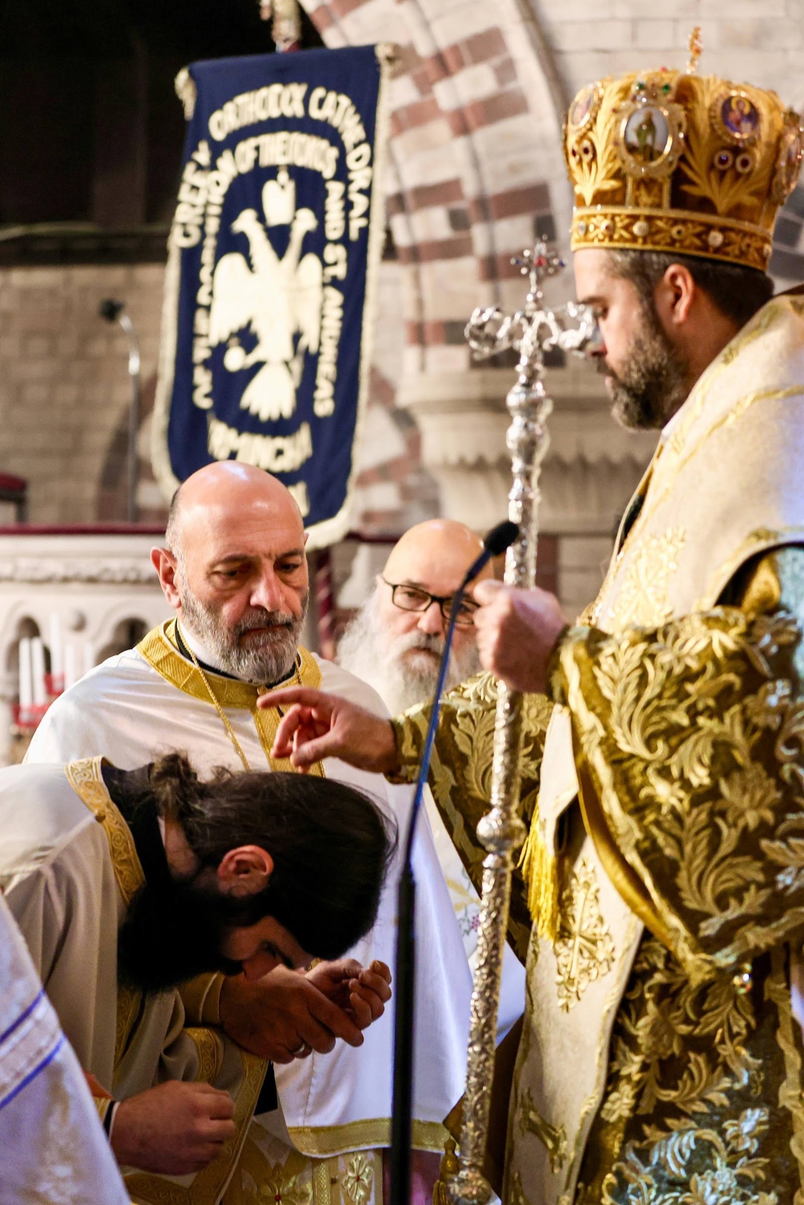 Κόμιζε δὲ κατὰ τὴν εὔσημον ταύτην ἡμέραν καὶ τὰς πατρικὰς εὐχὰς καὶ εὐλογίας τοῦ Ποιμενάρχου ἡμῶν, τοῦ Σεβασμιωτάτου Ἀρχιεπισκόπου Θυατείρων καὶ Μεγάλης Βρεταννίας κ. Νικήτα, οὗτινος τὴν μέριμναν καὶ τὴν ἀγάπην ἀδιαλείπτως ἔχεις σκέπην καὶ κραταίωμα ἐν τῇ ἱερατικῇ σου πορείᾳ. Ἐν τῷ ἱερῷ τούτῳ σεβάσματι τοῦ Πρωτοκλήτου, ἔνθα ἡ χάρις πλουσίως ἐκχέεται, κλῖνον τὸν αὐχένα τῇ θείᾳ βουλῇ καὶ δέξαι τὴν δωρεάν, ἵνα, καλῶς διακονήσας, «βαθμὸν ἑαυτῷ καλὸν περιποιήσῃ καὶ πολλὴν παρρησίαν ἐν πίστει τῇ ἐν Χριστῷ Ἰησοῦ».