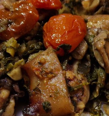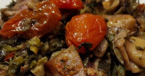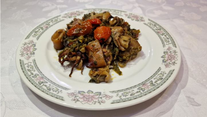 Kαλαμαράκια με χόρτα και ντοματάκια