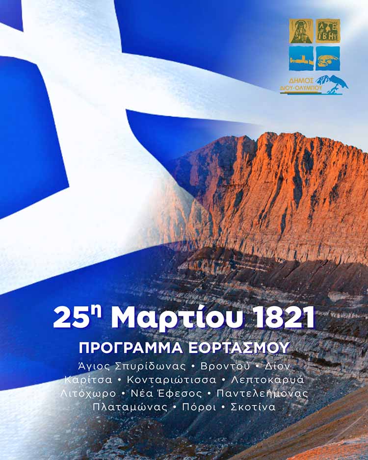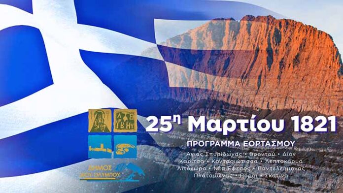Δήμος Δίου-Ολύμπου: Πρόγραμμα εορτασμού της Εθνικής Επετείου της 25ης Μαρτίου 1821
