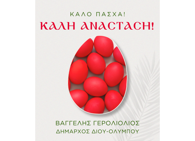Πασχαλινές ευχές του Δημάρχου Δίου-Ολύμπου Βαγγέλη Γερολιόλιου