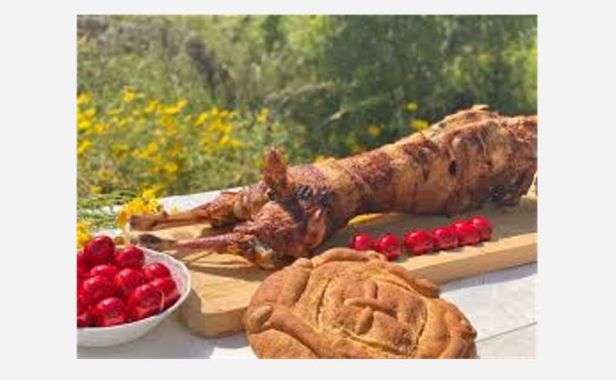 Στην αυλή του σπιτιού μ’ αναμμένα τα κάρβουνα να περιμένουν τον οβελία. Και τον απαραίτητο καυγά αναφορικά με το πώς πρέπει να δεθεί το κατσίκι στη σούβλα. «Όχι έτσι ρε μαλάκα, θα πέσει», «άσε ρε δεν ξέρεις εσύ»…. «Τι μυρωδικά θα βάλουμε στην κοιλιά;», «Άσε δεν ξέρεις εσύ, θα σου κάνω έκπληξη», «Εγώ δεν ξέρω; Που στην Αρκουδόραχη έψενα πρωί βράδυ;»…