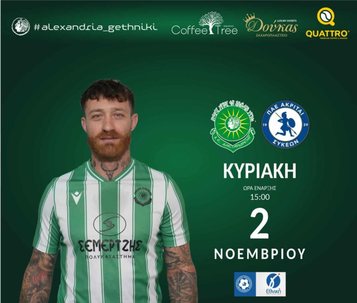 Η Α.Ε Αλεξάνδρειας προσκαλεί τον φίλαθλο κόσμο της ομάδας μας στον κρίσιμο εντός έδρας αγώνα με αντίπαλο τούς Ακρίτες Συκεών την ερχόμενη Κυριακή στις 15:00 στο γήπεδο μας. Σας περιμένουμε όλους σε μία δύσκολη μάχη.